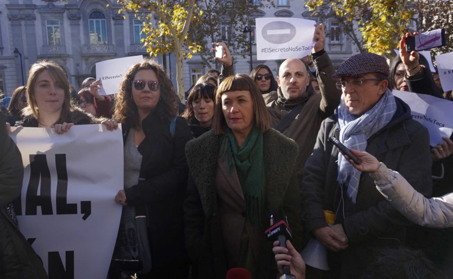En el marco de esta concentración con el lema ‘Nuestro secreto profesional, tu derecho a la información’, la jefa de Tribunales de Europa Press, Cristina Gallardo, ha sido la encargada de leer el manifiesto refrendado por más de medio millar de periodistas y que fue presentado ante el Consejo General del Poder Judicial para reclamar su «inequívoco compromiso con el derecho fundamental a la información sin injerencias indebidas».