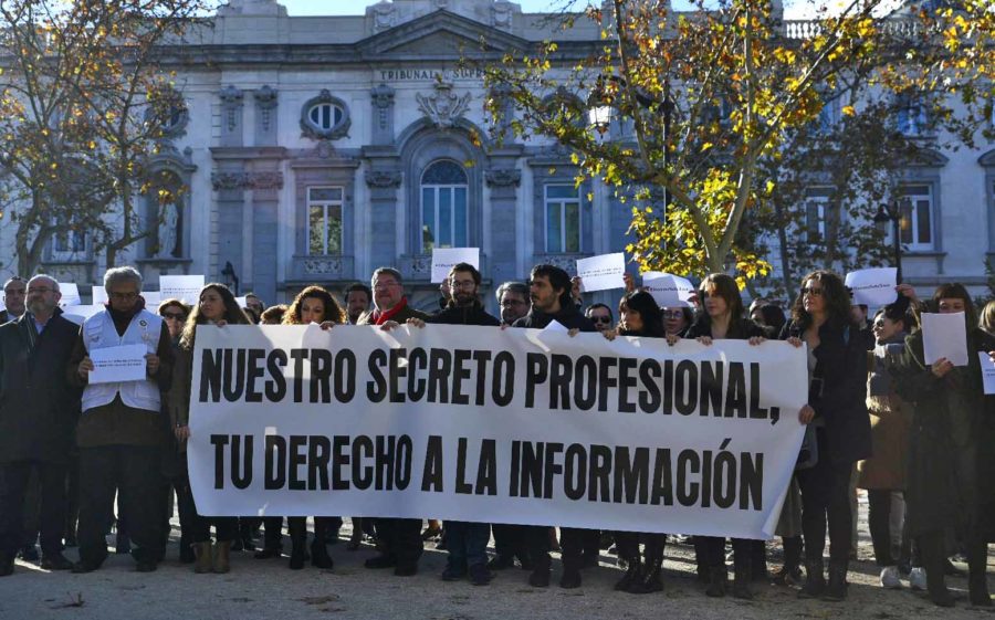 Entre los asistentes al acto se halla el presidente de la Federación de Asociaciones de Periodistas de España (FAPE), Nemesio Rodríguez, quien ha asistido porque «se ha producido una gravísima vulneración del derecho de los periodistas al secreto profesional, que no cuenta con precedentes» en España en los últimos años.