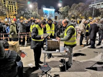 Hoy también han llevado la protesta a la Asamblea de Madrid, en Vallecas. Un grupo de unos 300 taxistas se ha desplazado hacia la cámara regional para concentrarse en las inmediaciones y exigir al presidente de la Comunidad de Madrid, Ángel Garrido, una solución que se plasme en una regulación automática de los servicios de Vehículo de Alquiler con Conductor (VTC).