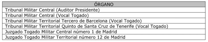 En la jurisdicción militar, están sometidos a nombramiento discrecional los cargos de auditores presidentes y vocales togados del Tribunal Militar Central y de los Tribunales Militares Territoriales y de jueces togados de los Juzgados Togados Militares Territoriales.