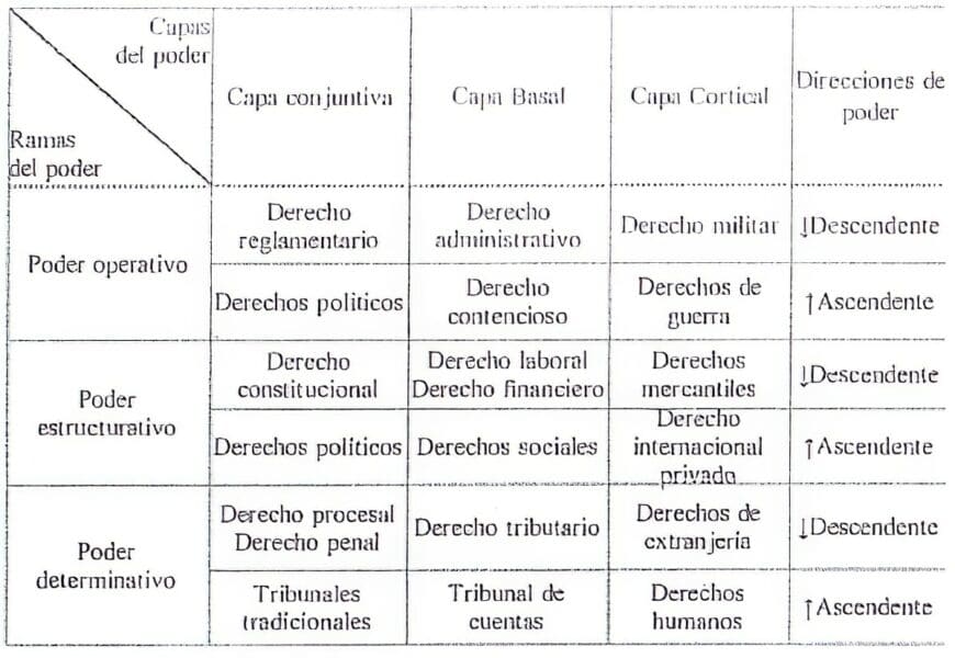 Segunda.- “Partimos de la absoluta falta de criterios sobre la nomenclatura jurídica, es decir, no hemos encontrado teorías solventes que permitan clasificar las ramas del Derecho que se aplica a las Universidades, Estados o épocas, por lo que el desajuste y la imposibilidad de determinar el alcance de cada tipología nos ha obligado a recurrir a la tabla de poderes del Estado” (P. 188).