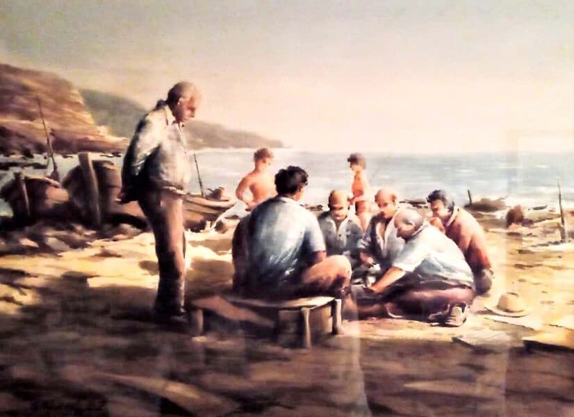 «Por la mañana trabajaba en Renfe. Enrtre las 3 y las 5 de la tarde era profesor en la Escuela y después estaba empleado en un departamento que se llamaba regiones devastadas, como delineante proyectista, que hoy estaría encuadrado en el Ministerio de la Vivienda», relata su hijo. «Solo pintaba los 15 días de vacaciones, en verano. El resto del tiempo no podía».