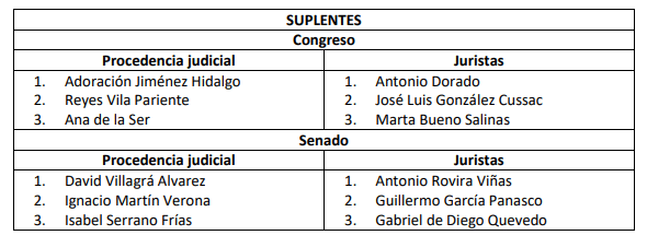 En cuanto a los vocales de procedencia judicial nombrados por el Congreso, la lista quedará contemplada:
