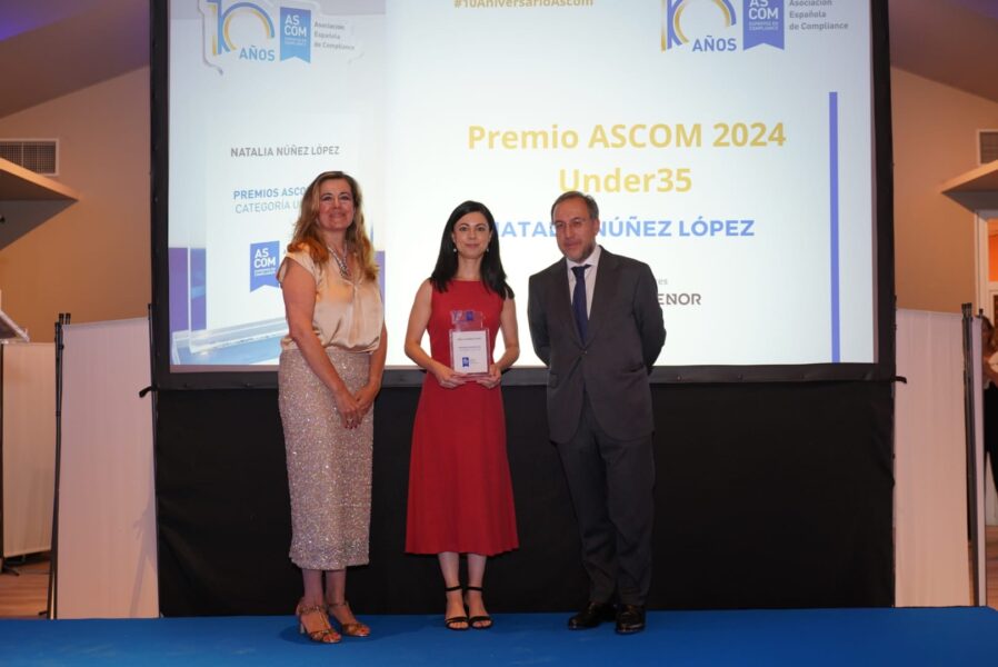 Los otros premiados fueron, en la categoría «Under 35» (por debajo de los 35 años), Natalia Núñez López, responsable de Cumplimiento y PBCFT en Mutualidad de la Abogacía. Por haber sido muy rigurosa y haber consolidado una labor de gran responsabilidad.