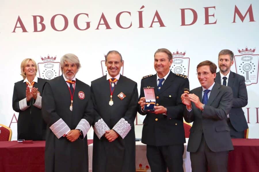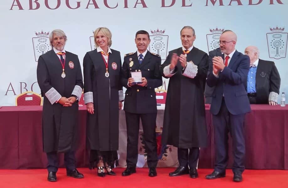 El Colegio de la Abogacía de Madrid (ICAM) celebró ayer una ceremonia de reconocimiento a la trayectoria de profesionales que han contribuido de manera significativa al Estado de Derecho. Los galardonados fueron el coronel Diego Pérez de los Cobos, quien recibió la Medalla Hermandad, junto con otros destacados miembros de las fuerzas de seguridad, como el comisario de la Policía Nacional Jaime Nicolás González y los inspectores Elisardo Morillo Rodelas y Rafael Fernando Porcel de la Fuente.