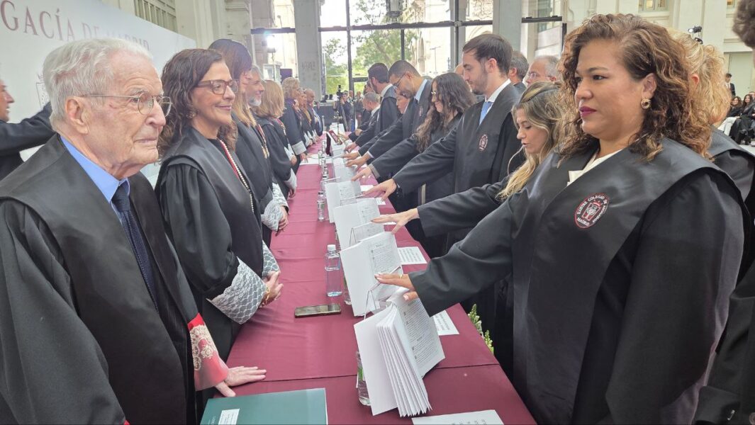 La vicedecana del ICAM, Isabel Winkels, fue la encargada de abrir el acto con un discurso dirigido a quienes se incorporan formalmente a la abogacía. «Este acto marca un antes y un después. Desde hoy, cada palabra, cada firma y cada silencio tendrá consecuencias reales en la vida de las personas a las que representéis», advirtió.