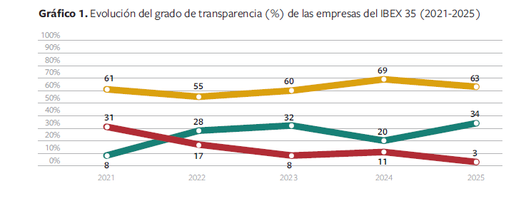 Un proceso de madurez del compliance dentro de las compañías ante el que el informe 2025 da una perspectiva positiva. Y es que esta edición muestra «una mejora estructural y sostenida de la transparencia en compliance». Algo que hace que la opacidad ya sea residual, con apenas un 3%.