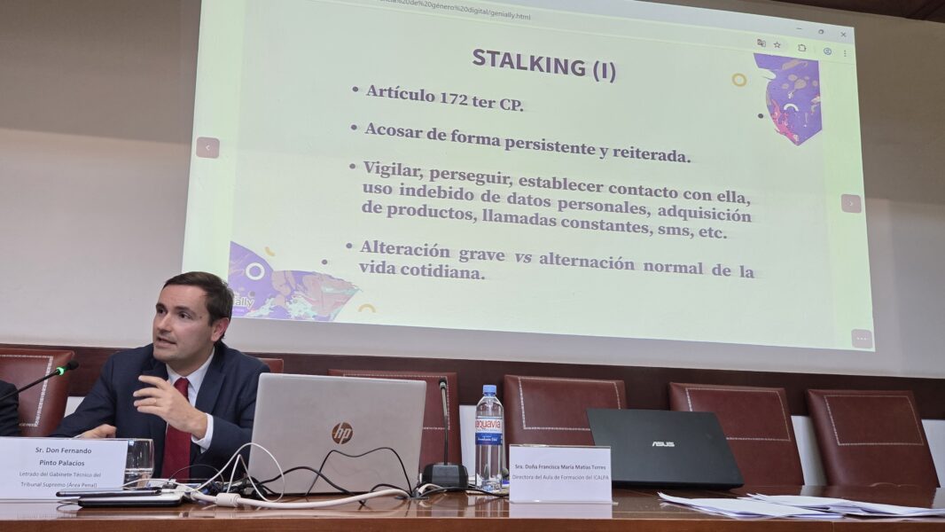 En este nuevo escenario, el magistrado destacó el protagonismo del acoso o «stalking» como una de las formas más características de violencia de género digital.