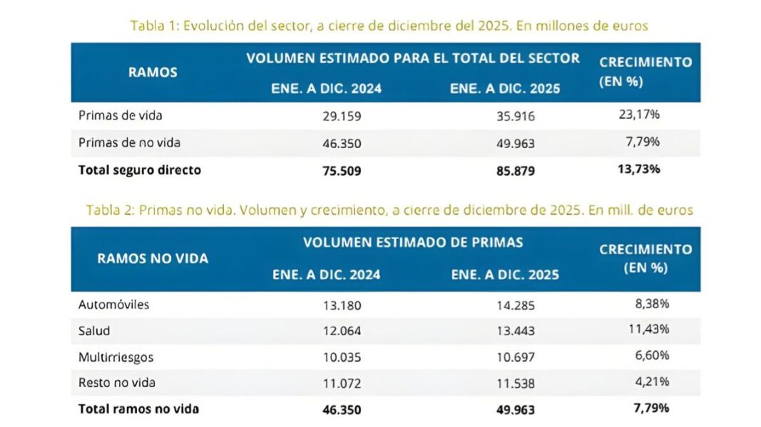 El impulso vino tanto del ramo de vida como del de no vida. El primero registró un aumento del 23,17%, hasta los 35.916 millones de euros, mientras que el negocio de no vida creció un 7,79%, con una facturación total de 49.963 millones.