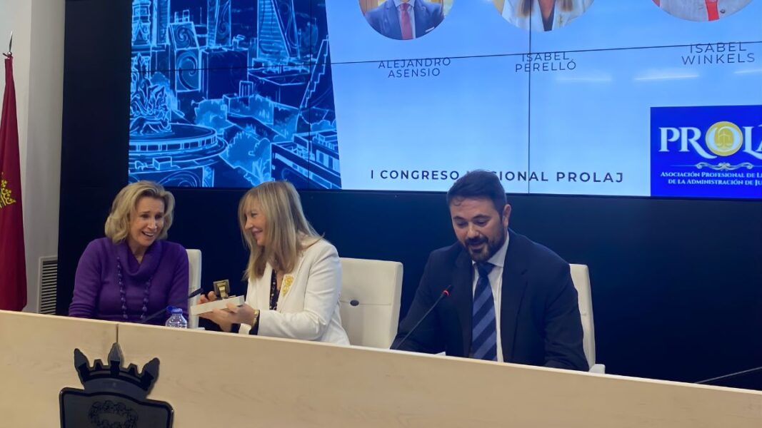 Con el objetivo de conmemorar la presencia de la presidenta del CGPJ en el acto de clausura de este congreso, el presidente de PROLAJ entregó un pequeño reconocimiento a Perelló: una pequeña mesa con un ordenador para no olvidar «olvidar de dónde venimos».